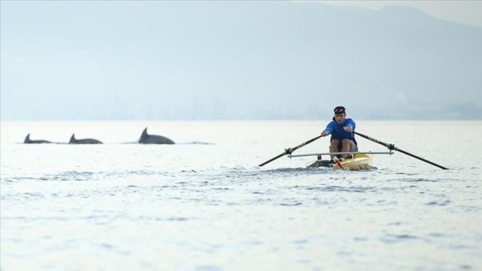 Yunusların "ziyaretine" değinen İpek, "Şanslıysanız sabah misafirleriniz oluyor. Bu sabah 3 yunus, kürek çekerken bize eşlik etti. Çok keyifliydi. Hem gün doğumunu seyretmek hem de yunuslarla beraber suda olmak gerçekten dünyada yaşanamayacak duygulardan biri diye düşünüyorum." ifadesini kullandı.