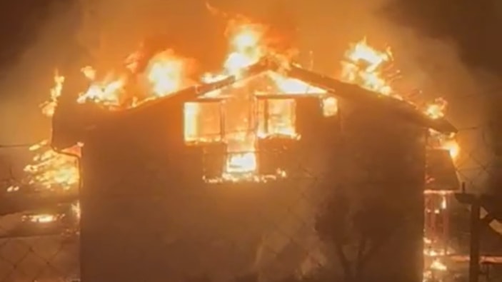 Güneş panellerinde meydana gelen bir arızadan dolayı çıkan çıkan kısa sürede yazlık evi sardı.
