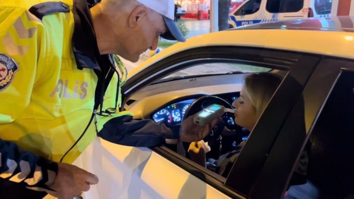 Uygulama noktasına giren 16 ACD plakalı otomobili sorgulayan ekipler, sürücü Hüsne Ş.'ye alkolmetre uzattı.
