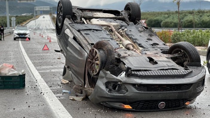 Sürücüsünün direksiyon hakimiyetini kaybettiği otomobil, refüje çarpıp takla atarak yaklaşık 100 metre sürüklendi. Sürücü Vural Y. ile araçta bulunan eşi S.Y. (52) ve çiftin çocukları A.Y. (29), kazadan hafif sıyrıklarla kurtuldu.