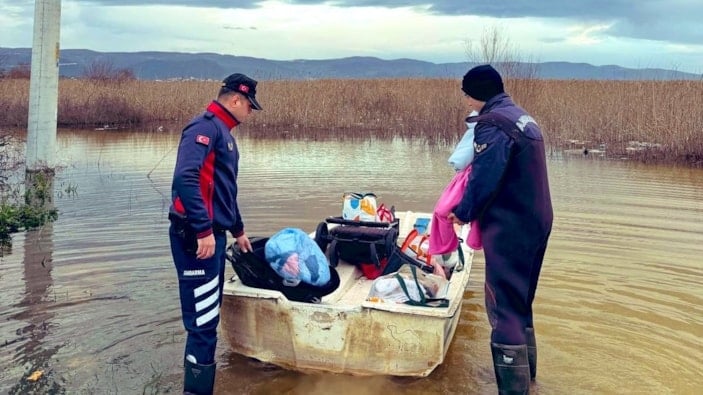 Nilüfer ilçesinde yağış sonrası su seviyesi yükselen Ulubat Gölü taştı. Göl yakınındaki evde mahsur kalan aile, jandarma ekipleri tarafından botla kurtarıldı.