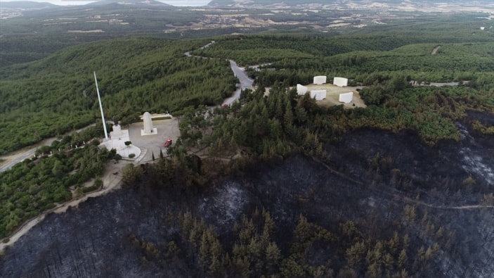 Çanakkale Savaşları’nın yaşandığı bölgedeki 57. Alay Şehitliği ile Conkbayırı mevkileri ise yangından dolayı dün sabahtan itibaren geçici olarak ziyarete kapatıldı.
