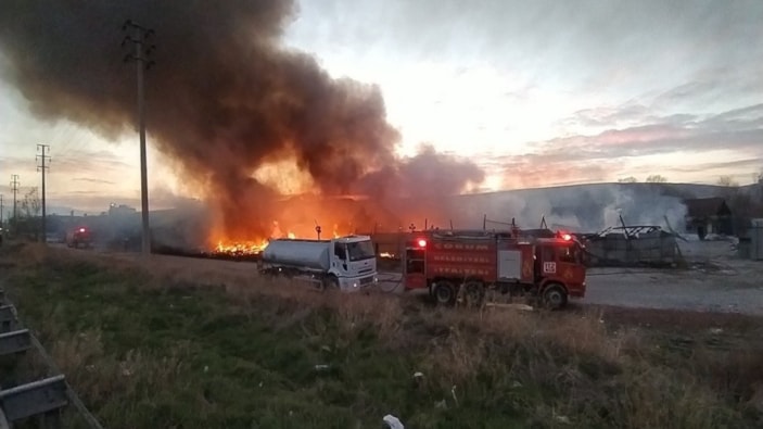 Çorum - Ankara Yolu üzerinde, bir atık toplama merkezinin trafosunda çıkan yangın bir tuğla fabrikasına da sıçradı.