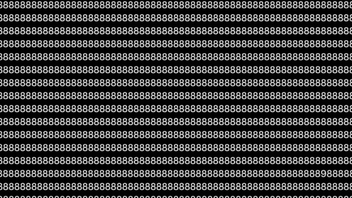 Bu optik illüzyon testinde, onlarca 8 rakamı arasına gizlenmiş farklı bir sayı bulunuyor. Katılımcılardan, yalnızca 8 saniye içinde bu sayıyı fark etmeleri isteniyor. Peki, siz bulabilecek misiniz?