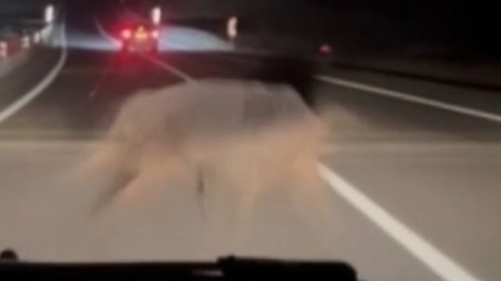 Diyarbakır’ın Çınar ilçesinde seyir halinde olan araçta video çekilerken domuza çarpma anı kaydedildi.