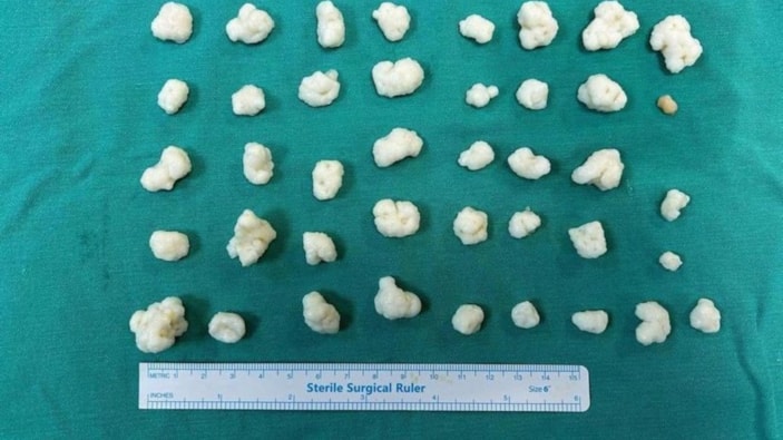Bunun üzerine ameliyata alınan hastanın dizinden 41 adet eklem faresi de denilen kemik parçası çıkarıldı.