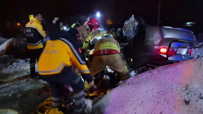 D-100 Karayolu'nda buzlanan yolda takla atan otomobildeki 2 kişi araçta sıkışarak yaralandı. Yaralılar itfaiye ekiplerinin çalışması ile kurtarılarak hastaneye kaldırıldı.