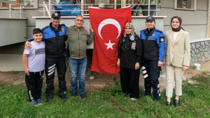 Düzce İl Emniyet Müdürlüğü’ne sosyal medyadan ulaşarak Türk bayrağı isteyen Gürler Ailesi'nin isteği yerine getirildi.
