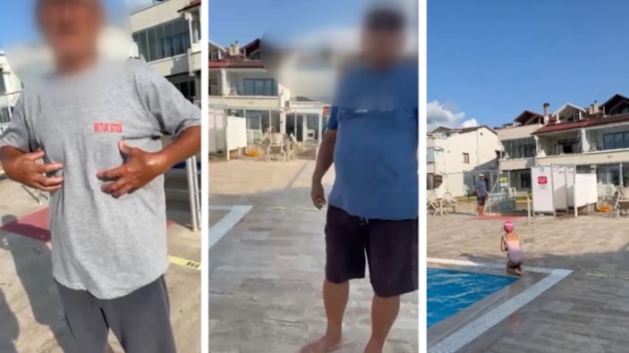 Bu sırada site yöneticisi A.K., uzaktan bağırarak havuza haşema ile girilmeyeceğini ve yasak olduğunu söyledi.