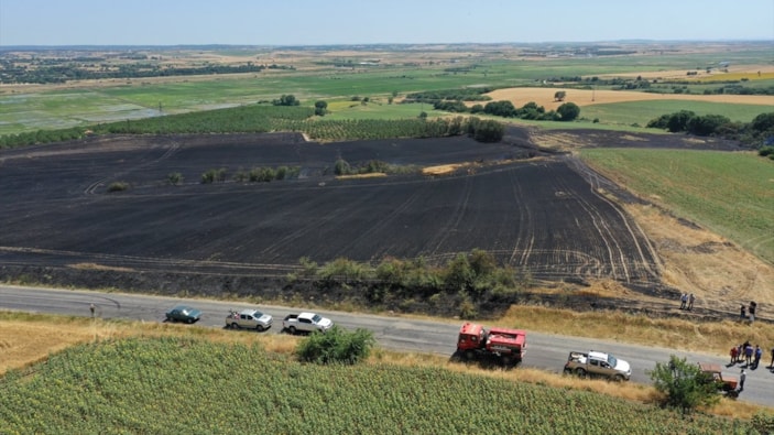 Edirne'de buğday ekili tarla küle döndü..