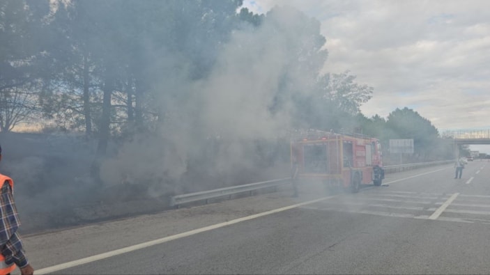 TEM Otoyolu'nun Edirne gişelerine yaklaşık 500 metre mesafede, yol kenarında ot yangını çıktı. Otoyolu duman kapladı, sürücüler ilerlemekte güçlük çekti.