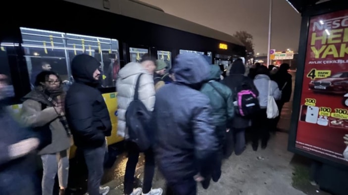 Sefer sayısı sık olmayan otobüsler nedeniyle duraklarda kuyruk oluşurken, vatandaşların mağduriyeti de kameralara yansıdı.