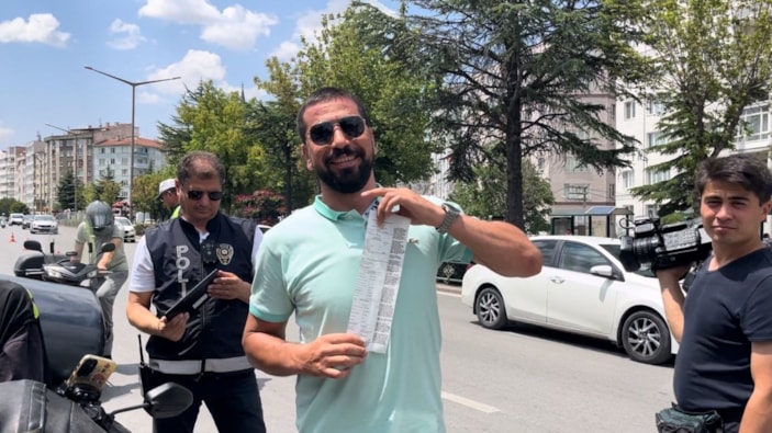 Kasksız motosiklet kullandığı için cezai işlem uygulanan Esat Tosun ise ceza ile poz verdi. Kask takmanın işine gelmediğini belirten Tosun, şöyle konuştu;