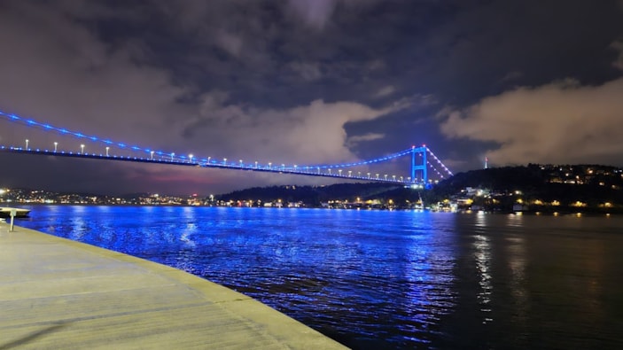 10-16 Mayıs Engelliler Haftası dolayısıyla Fatih Sultan Mehmet Köprüsü mavi renkle aydınlatıldı.