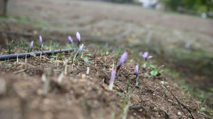 Her yıl ağustos ayında ekimi yapılan safran, ekim-kasım aylarında mor renkli ve hoş kokulu çiçekler açıyor.