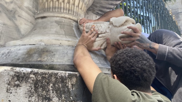 Galatasaray Lisesi'nin kapısına kopya heykel yerleştirildi