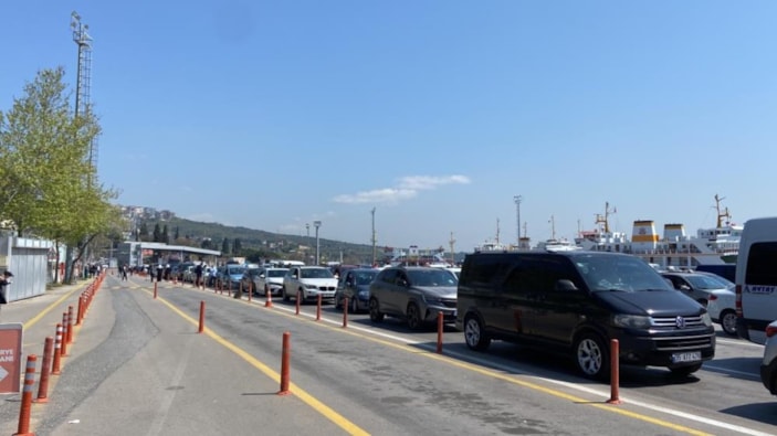 Ramazan Bayramı'nda D-100 Karayolu ile Gebze Eskihisar'daki feribot iskelesini kullanan sürücüler kilometrelerce kuyruk oluşturdu.
