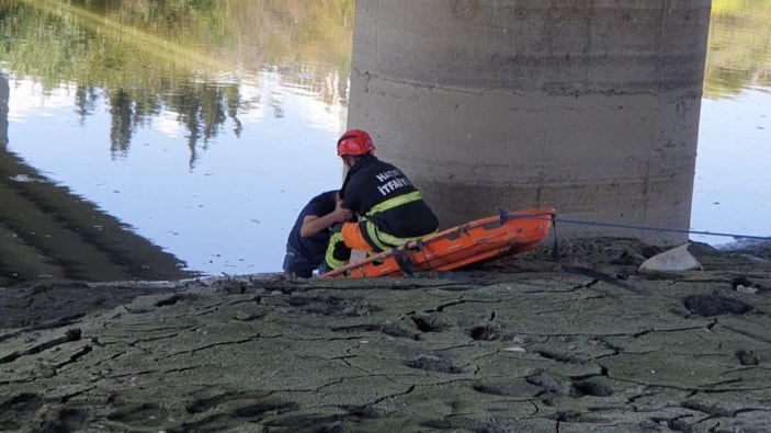 Asi nehrinin Antakya ilçe merkezinden geçtiği kısımda nehirde çamura saplanan vatandaş kendi imkanlarıyla çıkamayınca durumu itfaiye ekiplerine bildirdi.