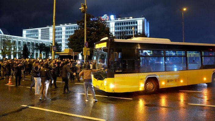 İETT'ye bağlı özel halk otobüslerini temsilen Saraçhane'deki İstanbul Büyükşehir Belediyesi (İBB) binası önünde toplanan özel halk otobüsü sahipleri, geniş güvenlik önlemleri altında bir süre bekleyerek, İBB'den ödemelerini alamadıklarını öne sürdü.