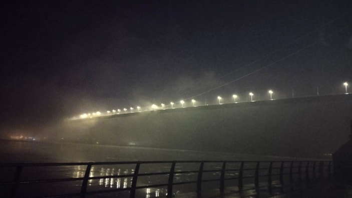 Boğaz çevresinde etkili olan sisten dolayı 15 Temmuz Şehitler Köprüsü ve Fatih Sultan Mehmet Köprüsü adeta görünmez oldu.