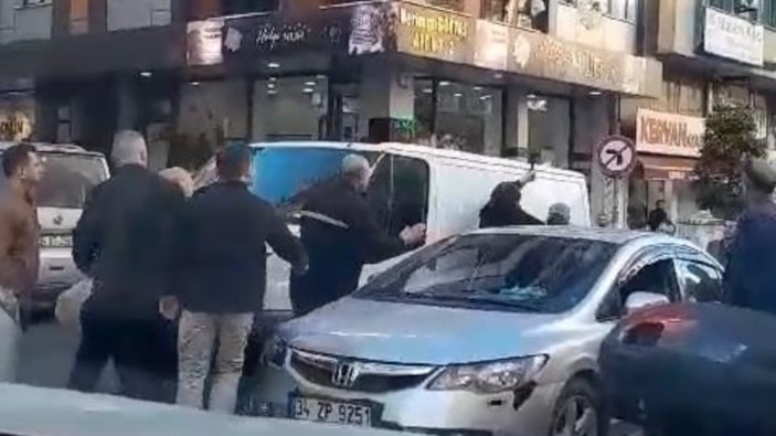 Sürücüler, araçlarından inerek yolda kavga etmeye başladı.