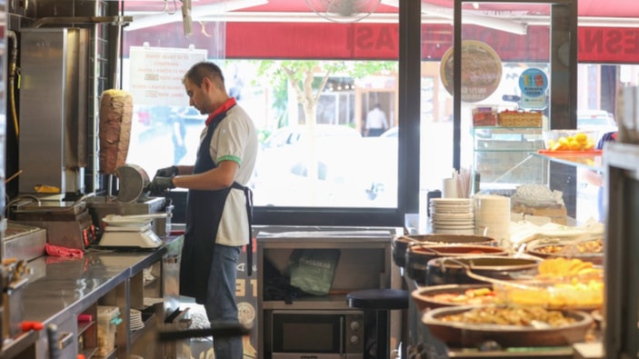 Fatih'teki bir lokantada döner ustası olan Kubilay Demircan, dışarıda hava sıcaklığının 40 derece olduğunu ancak çalıştığı yerin yaklaşık 60 dereceye çıktığını ifade etti.