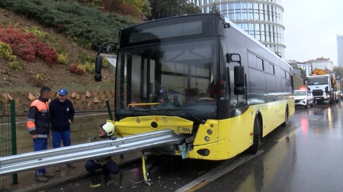 Kadıköy'de şoförünün direksiyon hakimiyetini kaybettiği İETT otobüsü, bariyere ok gibi saplanırken kazada can kaybı ve yaralanma olmadı.