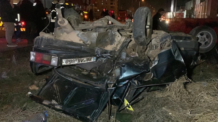 Çarpışmanın şiddetiyle iki araç da kontrolden çıkarak yol kenarına savrulurken, Fiat Tofaş takla attı.
