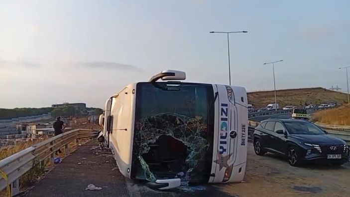 Kuzey Marmara Otoyolu'nda saat 06.30 sıralarında Edirne istikametine seyir halinde bulunan 60 TY 228 plakalı yolcu otobüsü, Sancaktepe Yenidoğan gişeler mevkisinde virxaı alamayarak devrildi.