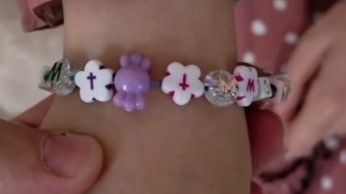 Görüntülerde küçük kızın kolundaki bileklikte haç işaretleri olduğu görülüyor.