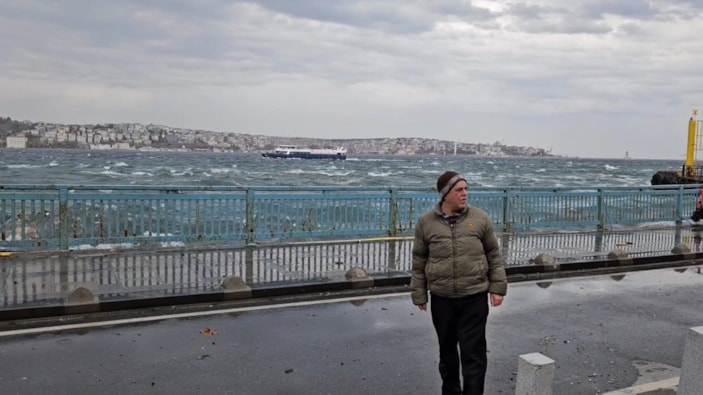 İstanbul’da etkili olan lodos nedeniyle denizde büyük dalgalar oluşurken, bazı vatandaşları ise yürümekte zorlandığı görüldü.