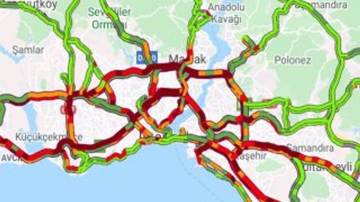 Mesainin bitimiyle birlikte ise İstanbul trafiğinde de yoğunluk yaşandı. Yer yer trafik durma noktasına gelirken, İstanbul Büyükşehir Belediyesi yoğunluk haritasında yüzde 83'lere çıktığı görüldü.
