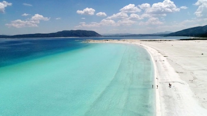 Salda, berrak turkuaz renkli sularıyla ve etrafındaki beyaz kum plajlarıyla ünlüdür.