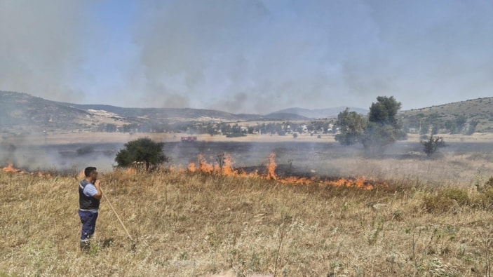 İzmir'in Foçaköy ile Foça Açık Ceza İnfaz Kurumu arasındaki otluk alanda, saat 14.00 sıralarında yangın çıktı.