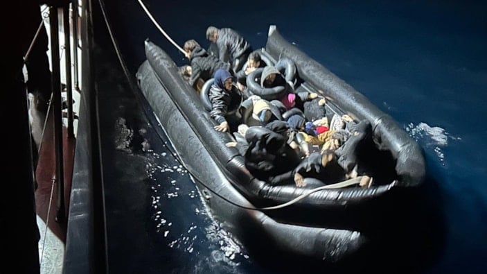 İzmir Seferihisar açıklarında sürüklenen lastik bottaki 13'ü çocuk 33 düzensiz göçmen ekiplerce kurtarıldı.