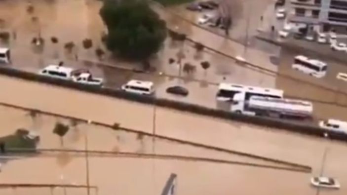 İzmir'de yağış sonrası yolları göle döndü İZLE