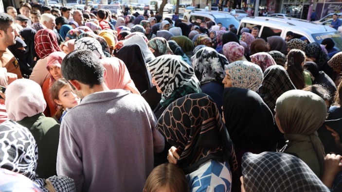 Açılış öncesi vatandaşlar mağaza önüne akın etti. İş yerinin kapıları açmasıyla ile vatandaşlar mağazaya akın etti.