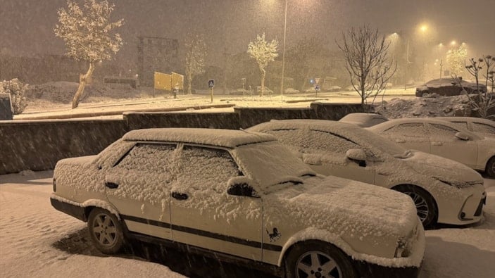 Kahramanmaraş'ta yağış nedeniyle parklar, caddeler, sokaklar ve binaların çatıları beyaz örtüyle kaplandı.