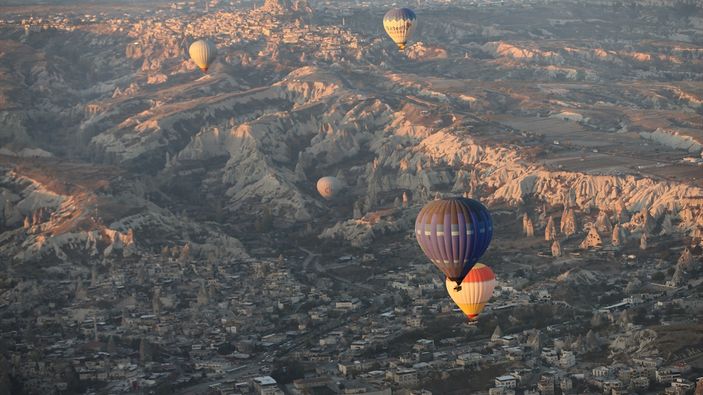 UNESCO Dünya Doğal ve Kültürel Mirasları Listesi'nde yer alan Kapadokya'da, turistlerin peribacaları ve doğal kaya oluşumlarıyla kaplı vadileri gökyüzünden izlenmesine olanak sunan balon turları, yerli ve yabancı turistlerin ilgisini çekmeye devam ediyor.