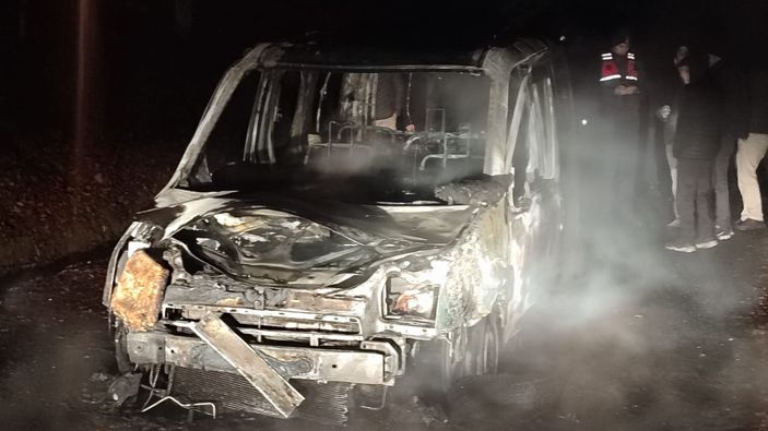 Karabük'ün Yenice ilçesinde seyir halindeyken alev alan hafif ticari araç tamamen yanarak kullanılmaz hale geldi.