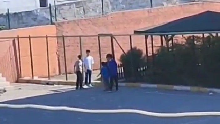 D.D, arkadaşından aldığı bıçakla diğer çocukları tehdit ederken, o anlar ise bir velinin cep telefonu ile saniye saniye kaydedildi.