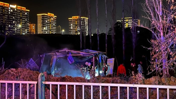 Meydana gelen yangında yaralanan olmazken, baraka da kullanılamaz hale geldi.