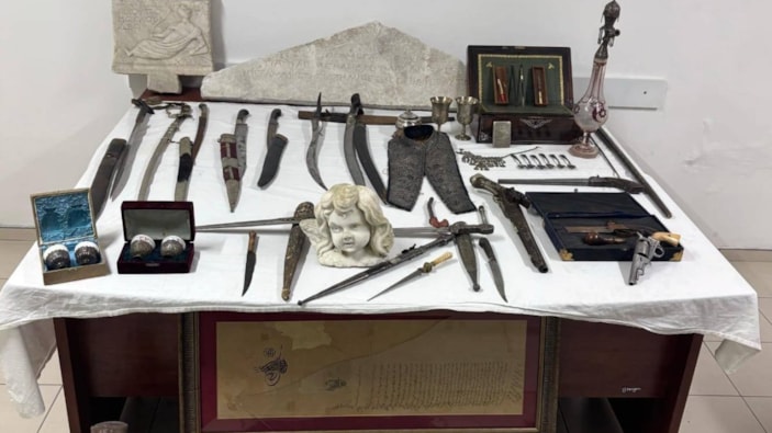 Kocaeli'de durdurulan araçtan kaftandan kılıçlara çok sayıda eser çıktı