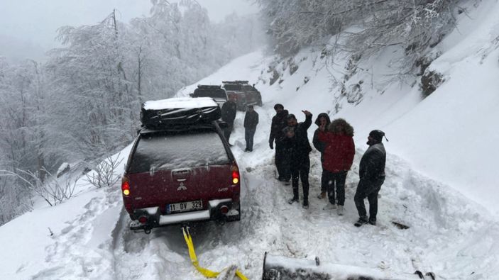 Kartepe ilçesi Kuzuyayla Tabiat Parkı'na doğru yola çıkanların içinde bulunduğu 5 araç kara saplandı. İhbar üzerine bölgeye sevk edilen ekipler, iş makineleriyle kara saplanan araçları çıkardı.
