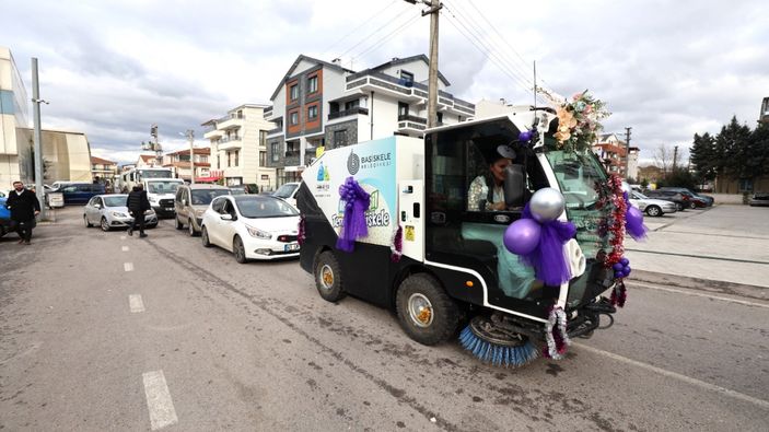 Kocaeli'de kullandığı süpürge aracı gelin arabası oldu