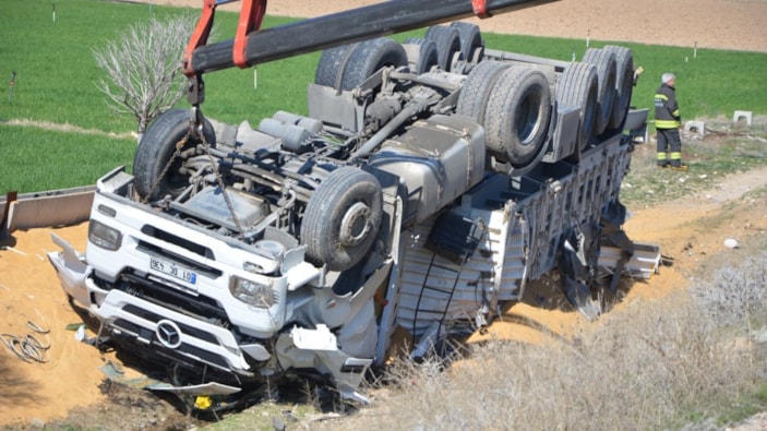 Konya’da tır şarampole devrildi: 1 ölü