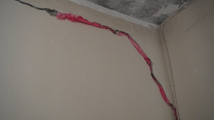 Oluşan çatlakları bez parçalarıyla dolduran Orhan, evlerinin oturulamaz hale geldiğini belirtti.