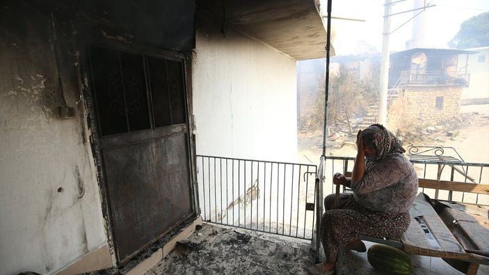 Antalya'nın Manavgat ilçesindeki orman yangınında evi kullanılamaz hale gelen ve tedavisi için biriktirdiği parasını da kaybeden kadın, yaşananları çaresizce izledi.