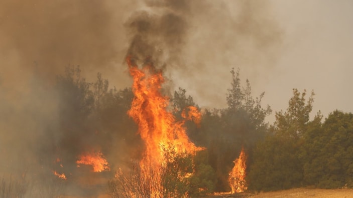 Manisa'nın Kula ilçesinde ormanlık alanda yangın çıktı. Rüzgarın da etkisiyle hızla geniş alana yayılan yangına ekiplerin havadan ve karadan müdahalesi sürüyor.