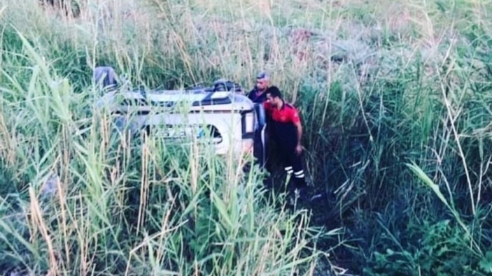 Tarlaya devrilen araçtaki 2'si çocuk 5 kişi yaralandı.